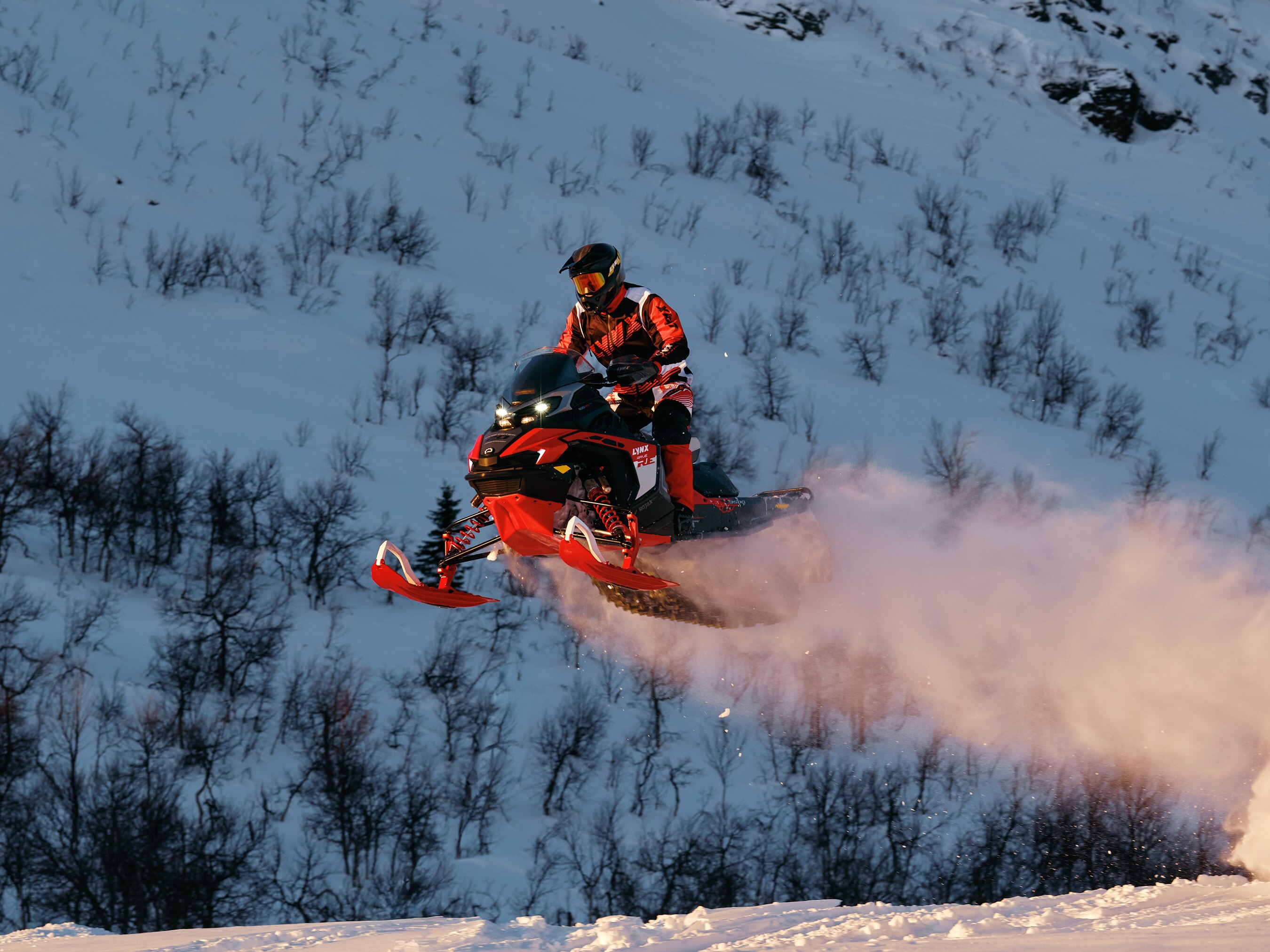The 2024 model year marked a major leap for the Rave RE. The crown jewel of Lynx’s trail sport sleds moved to the Radien2 platform, designed for active riding. The update brought improved rider ergonomics, a powerful 4-piston brake, a modern 10.25″ Touchscreen Display, and high-performance LED headlights. The PPS3 rear and LFS+ front suspension, paired with three-way adjustable KYB PRO 46 HLCR Kashima shocks, were tuned for even more aggressive riding.