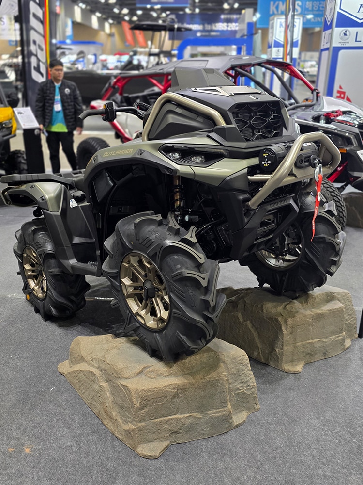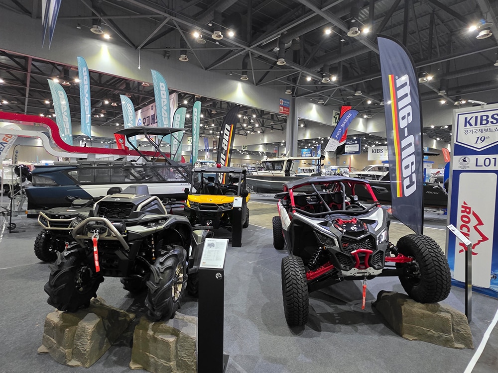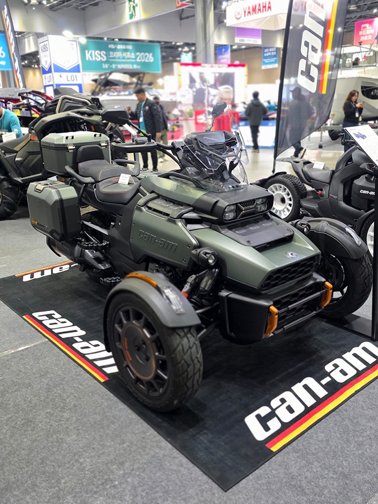 캔암 온로드 라인업으로는 스파이더 RT SEA-TO-SKY, 캐니언 REDROCK, 라이커 랠리(Ryker Rally), 스파이더 트레일러(Spyder Trailer)가 전시됐다. 3륜 구조의 스파이더 시리즈는 기존 이륜차와는 다른 주행 경험을 원하는 라이더들의 관심을 끌었다. 캔암 오프로드 라인업으로는 아웃랜더 MAX LTD, 아웃랜더 X MR, 디펜더 XT(Defender XT), 매버릭 X3 XRC가 전시됐으며, 강력한 성능과 내구성으로 국내 오프로드 시장에서 BRP 브랜드의 존재감을 다시 한번 각인시켰다.