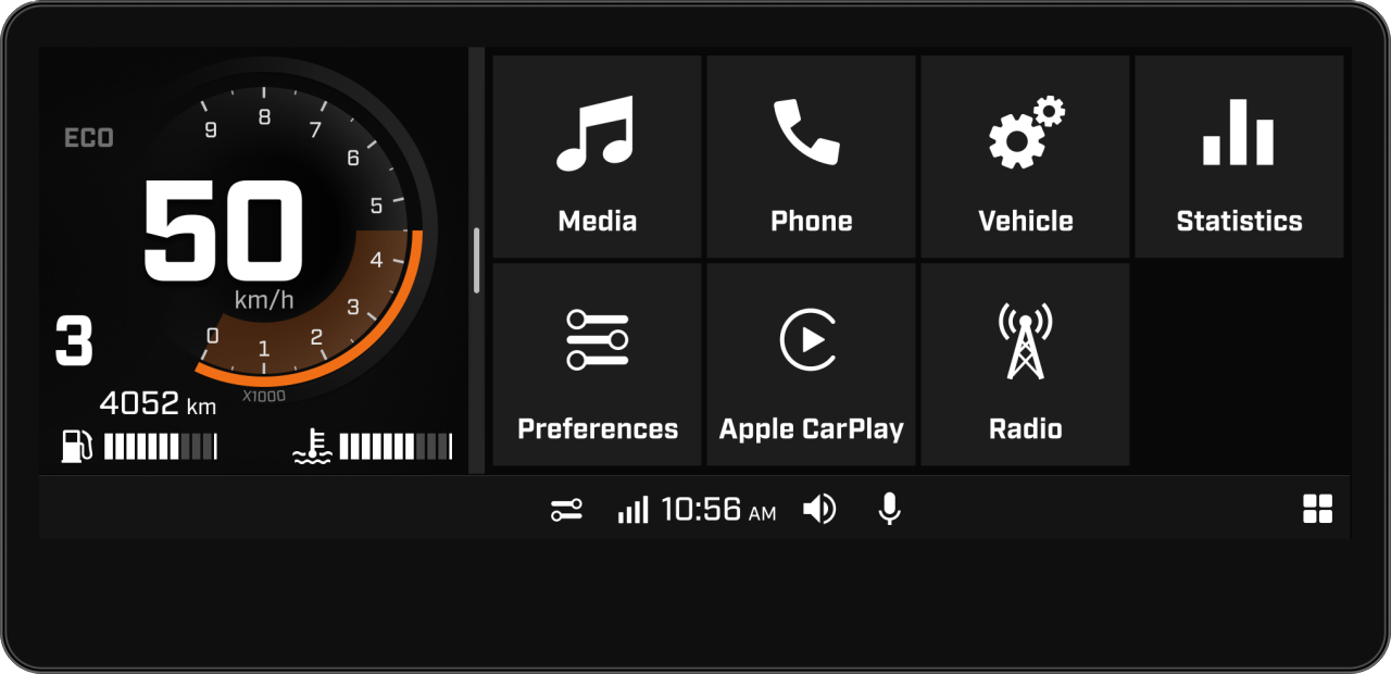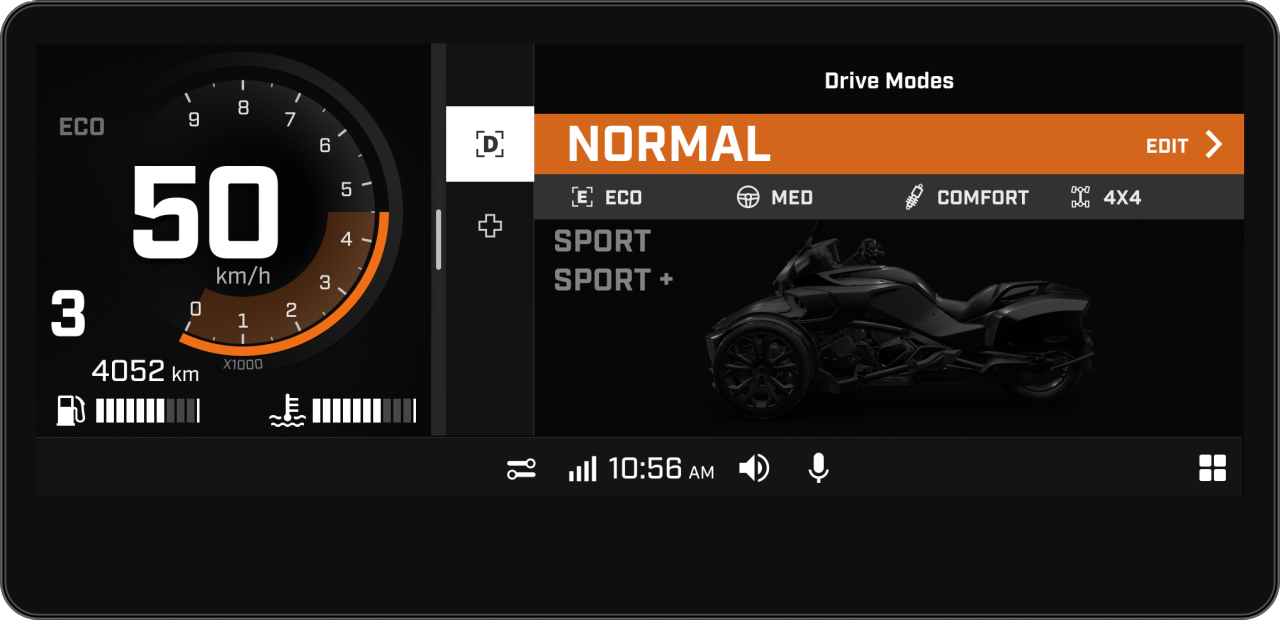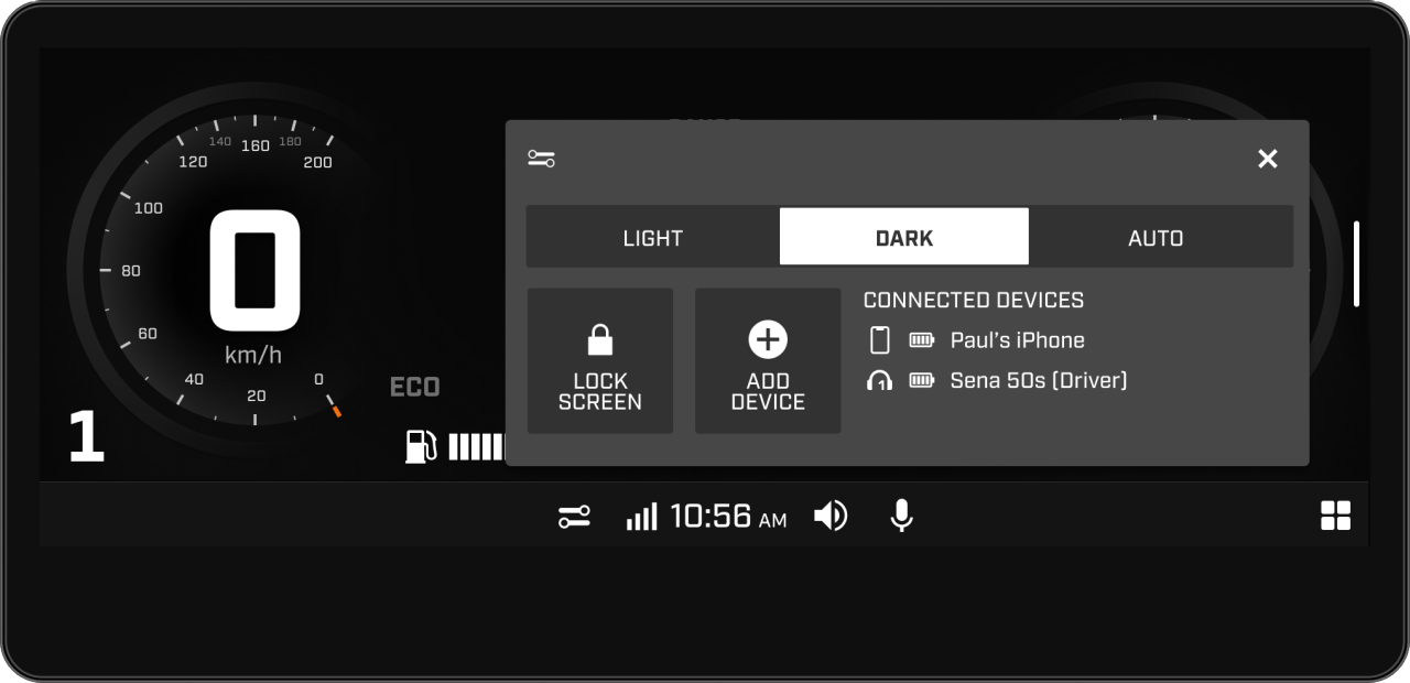 By pairing the Vibe comm system to the 10.25" display, the connectivity experience is taken to another level. Listen and easily control your favourite songs, use your phone's voice assistant while riding (with the control module) and more.