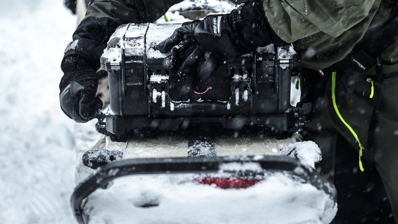 Нашиот ексклузивен систем за прицврстување на товарот е најдобриот начин за носење предмети во трупот (тунелот) на вашите санки, како што се торби за товар, туби за гориво, дури и сноуборд или скии. Потребни се само секунди и васиот товар е целосно обезбеден - всушност, тој е дизајниран да држи сила до 4 Gs.
