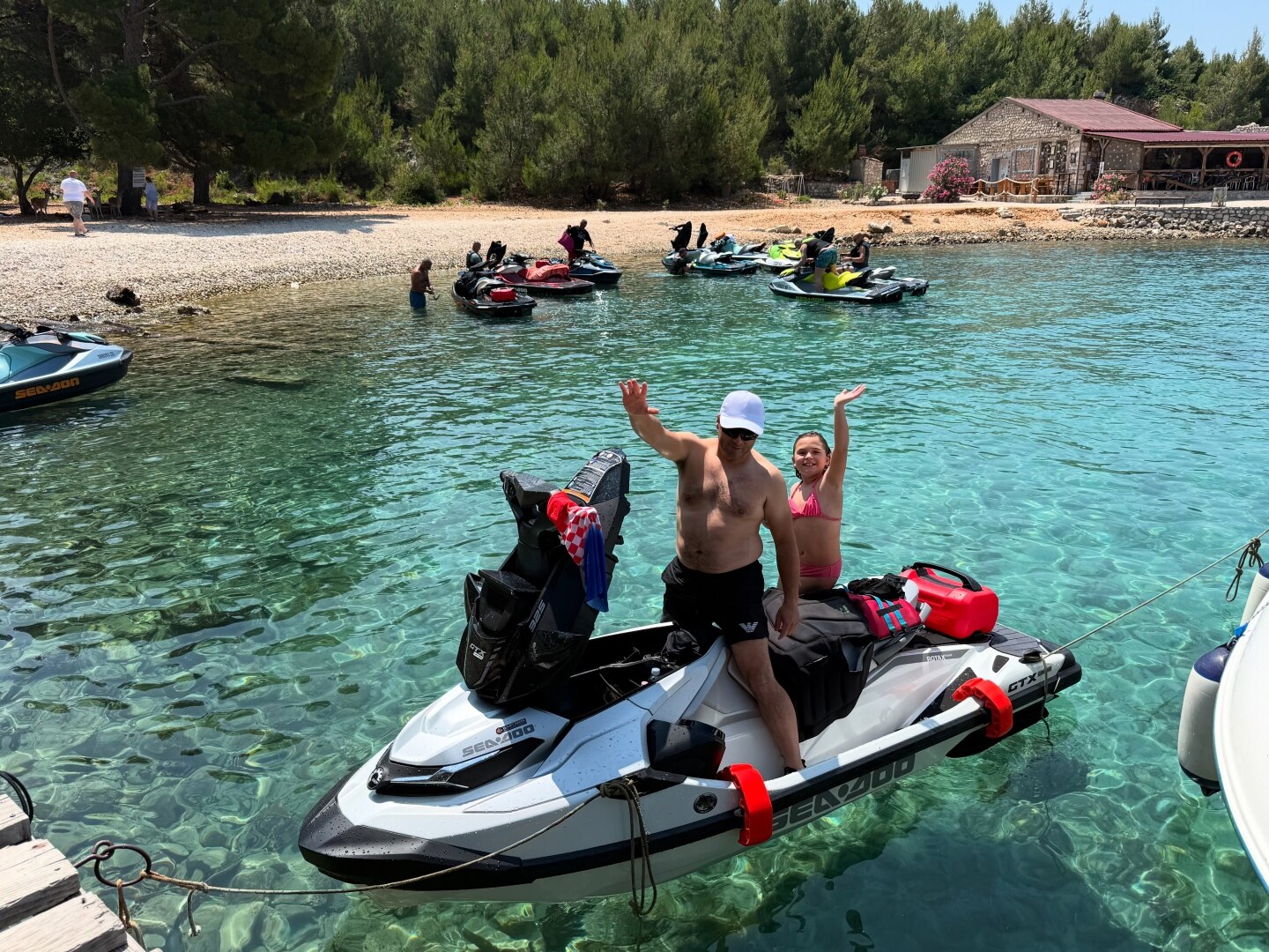 Na dogodku nas je spremljal tudi naš spremljevalni čoln Cap Camarat 9.0 CC. Poleg glavnega programa Sea-Doo Adventure Day smo za vse udeležence organizirali tudi testne vožnje z najnovejšimi modeli SEA-DOO GTX LTD 325 iDF (Tech Package) – White Pearl (Premium Color) 2025 in SEA-DOO GTX LTD 325 iDF (Tech Package) – Teal Metallic 2025. Ta dodatna aktivnost je pritegnila veliko pozornosti in dodatno spodbudila zanimanje za nakup novih Sea-Doo plovil.