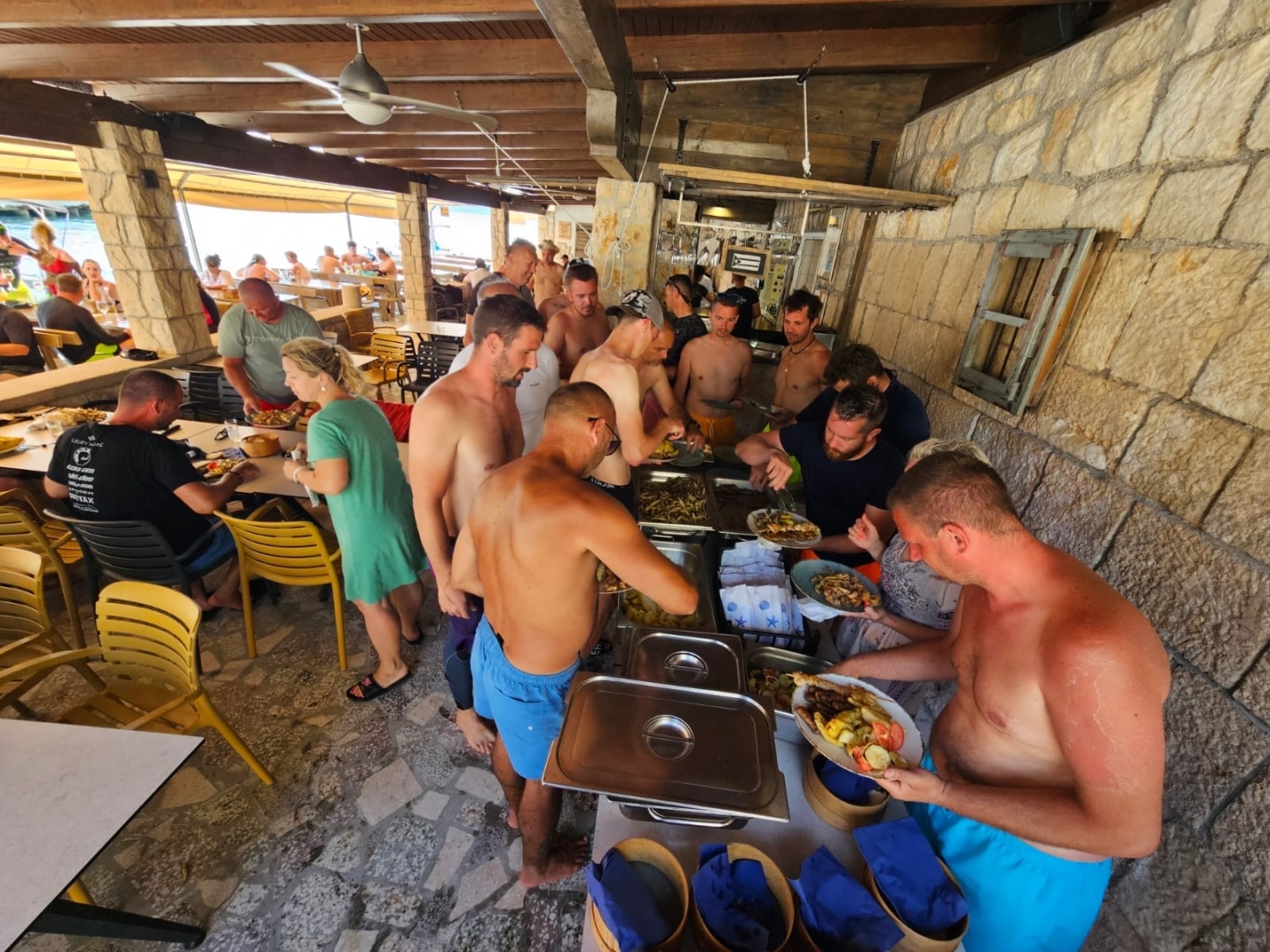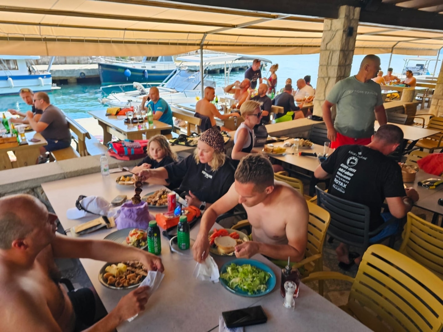 Kosilo smo organizirali na Golem otoku, kjer je bil čas za sprostitev, plavanje in druženje. Po povratku na izhodiščno točko je sledilo še sproščeno večerno druženje in večerja v restavraciji Karaka, kjer so se udeleženci še zadnjič ta dan povezali ob večerji, obudili utrinke s poti in že razmišljali o prihodnjih skupnih dogodivščinah.